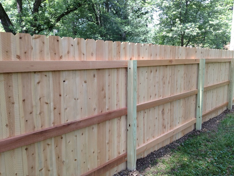 2.36.6. Double Fences. Two separate fence structures (i.e. separate posts and rails) bordering the same property line is not permitted. A two-sided privacy fence requires Committee approval. Pickets must share the same posts and side rails. Rear yard privacy fences may be constructed as a single row of posts with pickets on both sides..